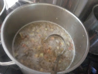 After that we making soup " clamp cowder ", the first saute garlic, onion and beef bacon, after that add clamp stock and then put in the potatoes and tomato. after the potatoes were mushy, put in the velute sauce then simmer.